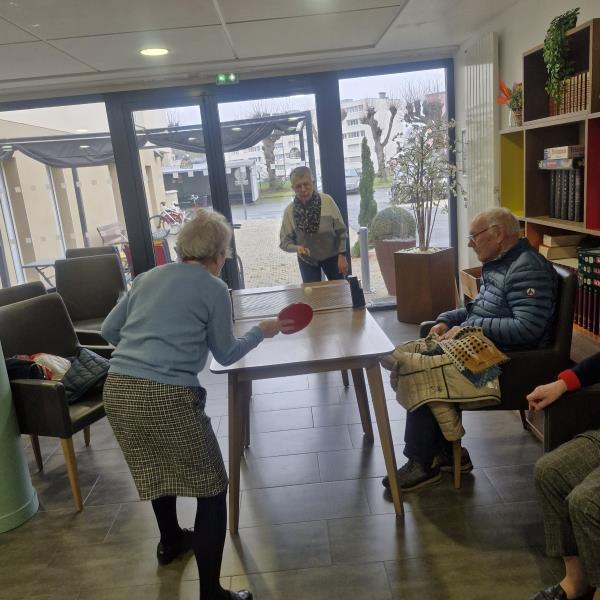 Le vendredi 27 février 2026, une animation sur le thème du ping-pong a été organisée dans le grand salon de la résidence. L’objectif de cette activité était de proposer un moment ludique et convivial tout en stimulant les capacités motrices et cognitives des résidents.