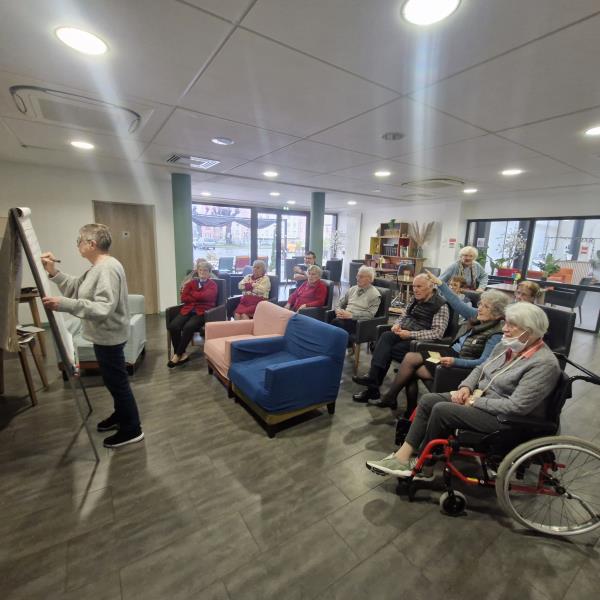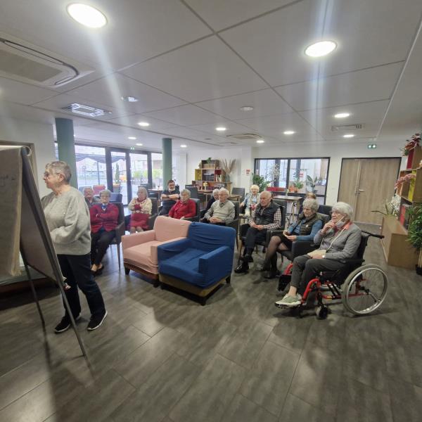 Une activité de remue-méninges s’est récemment déroulée au sein de l’établissement, animée avec enthousiasme par Mme Rousseau, résidente.