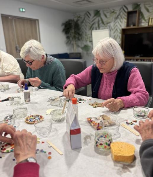 Les résidents ont participé à un atelier de création en mosaïque. Cette activité manuelle a permis à chacun de laisser libre cours à sa créativité tout en découvrant une technique artistique accessible et valorisante. L’ambiance a été conviviale et chacun a pu avancer à son rythme.