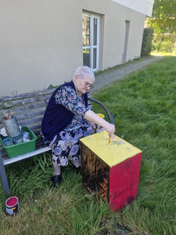 Le mercredi 08 avril 2026 dans l’après-midi, les résidents ont participé à la mise en peinture de deux ruches, avec application d’une première couche suivie d’un temps de séchage. Les ruches seront par la suite remises à l’apiculteur « Le Secret des Reines », basé à Allonnes. Dans un second temps, Pierre, apiculteur, viendra animer une conférence afin de présenter son métier et partager son expérience le 19 mai prochain.