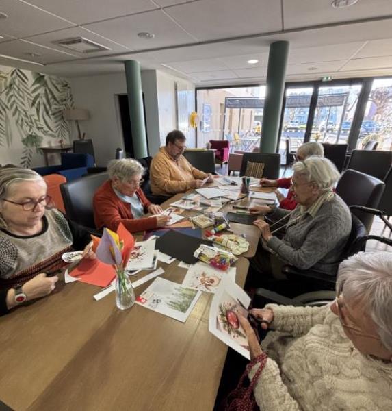 Mardi 30 décembre 2025, nous avons créer des cartes de vœux. Chaque résident a pu rédiger plusieurs cartes destinées aux personnes de leurs choix, afin de leur adresser des messages chaleureux et leur souhaiter une bonne année. Ce moment a permis de partager des pensées positives, de travailler l’expression écrite et de faire plaisir aux destinataires à travers des mots personnalisés.
