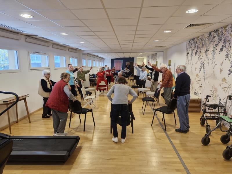 Comme chaque mercredi matin, les résidents ont participé, ce 25 mars 2026, à une séance de gym douce animée par l’association Siel Bleu.
