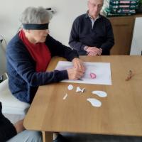 Publiée le 02/10/2024Nos résidents ont dû faire appel à leur mémoire et le sens du toucher lors du jeu « Visage à l’aveugle » ! Un jeu aux règles simples mais à la pratique plus complexe ! Le but, refaire le visage du modèle sans pouvoir utiliser ses yeux. Une image d’un v [...] Lire la suite