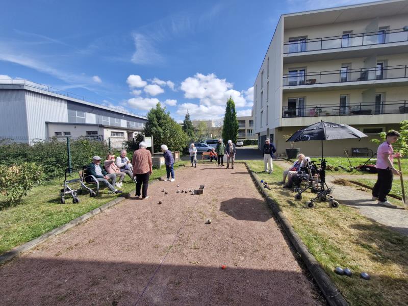 Le jeudi 16 avril 2026, dans l’après-midi, les résidents ont profité d’un moment agréable en jouant à la pétanque sur le terrain extérieur de la résidence. Sous un beau soleil, l’ambiance était chaleureuse et conviviale. Une belle activité à renouveler durant les beaux jours !